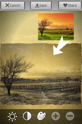 You can transform your photos with one simple click, change its saturation, film color, save in your phone or share them with your friends
