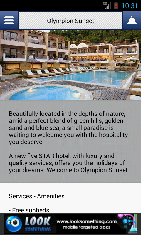A new five STAR hotel, with luxury and quality services, offers you the holidays of your dreams. Welcome to Olympion Sunset.