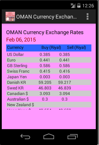 OMAN Currency(omani riyal) Exchange Rates is free application that gives you the latest exchange rates . It gives you the both Buy exchange rate and Sell exchange rate both.