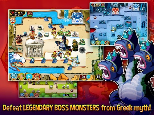 Play the action-packed defense game where you command the Greek gods themselves! Blast hordes of monsters with elemental magic, call legendary heroes to your aid, and summon your gods to wreak havoc across the battlefield!