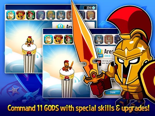 - Unlock and upgrade unique skills for each of 11 gods, from Poseidon’s Sushi Buffet to Ares’s Party Crasher and Hephaestus's Cluster Bomb!