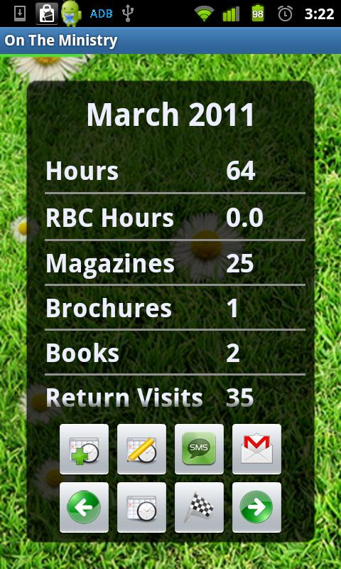 Control you statistics, send your monthly report by email or by SMS or use the "Chronometer" function to know the time you were in field service.