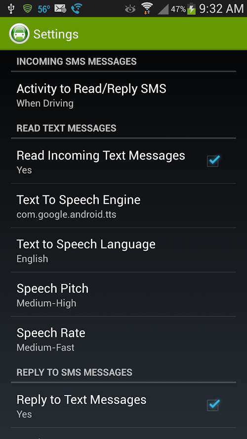 3. Automatically suspend the reading/handling of SMS text messages and auto answering phone calls when you're no longer driving