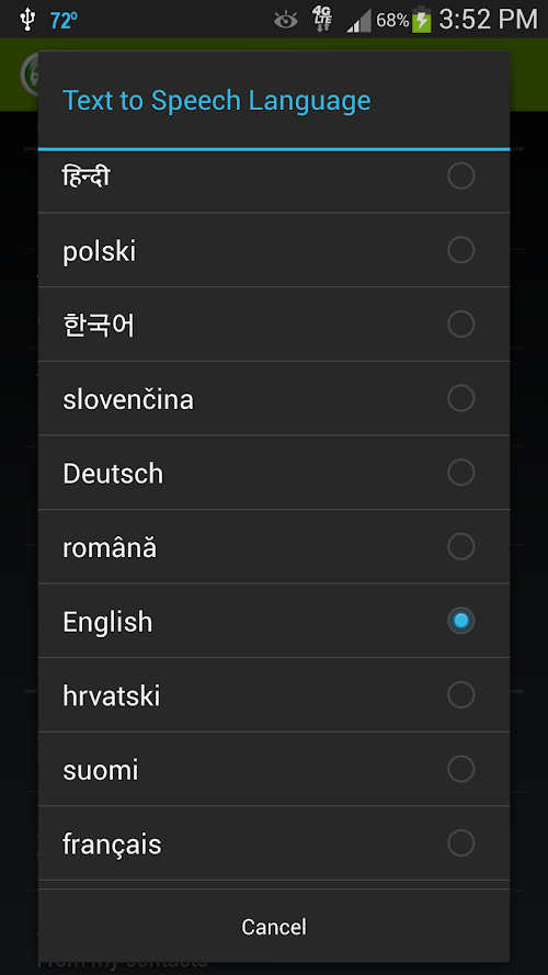 6. Read text messages by any languages supported by your phone's 'Text to Speech' engine
