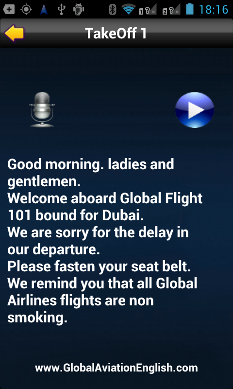 In this app you will be able to Read and Listen to many onboard flight attendants announcements. All announcements on the app are done by native English speakers, so you can get the perfect model on how to perform the onboard announcement. There are regular announcements informing passengers of procedures, and announcements related to emergency situation.