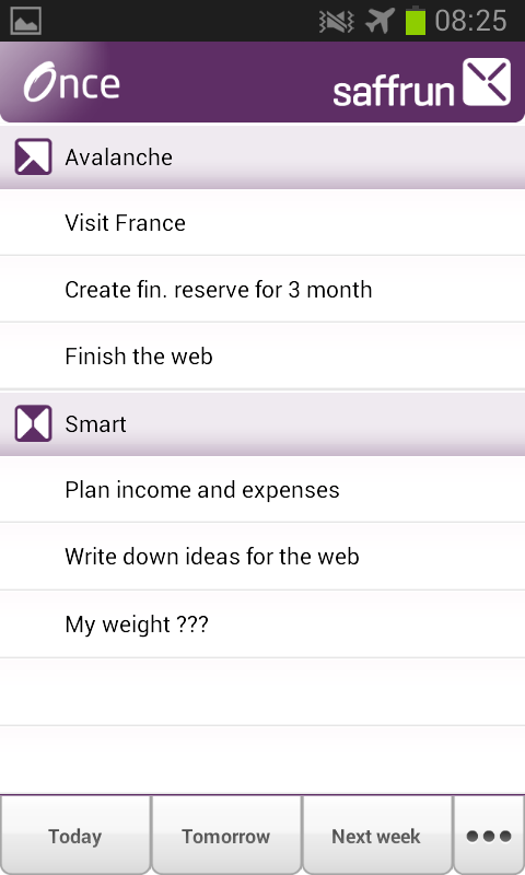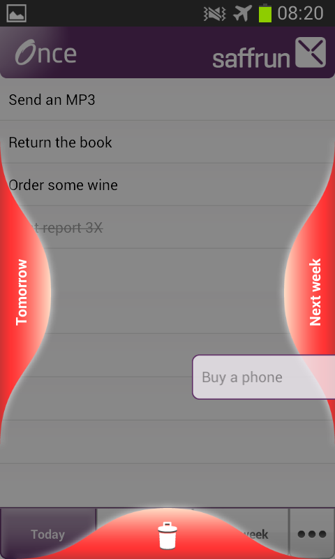 1.	The basic part is ONCE, an application indented for truly simple management of daily tasks or To-Do lists, as well as notes and ideas, all without reminders.