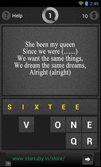 In the first category you will play the game to guess the title of the song, in which almost all the song titles are in the category. You simply press the alphabet letters are available under the column question. If you've correctly answer each question and you get a value of one, and so on.