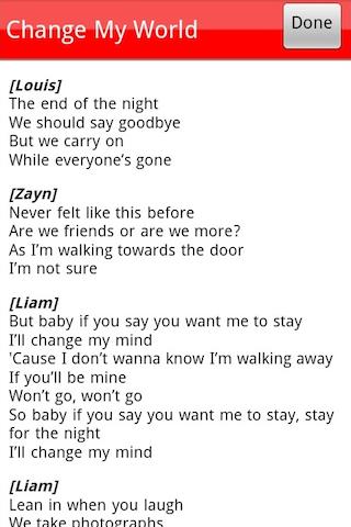 If you are looking to download other versions of One Direction Lyrics Android App, We have 1 version in our database. Please select one of them below to download.