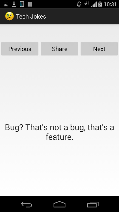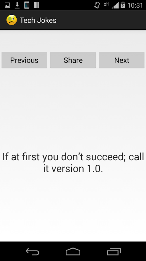 If you are looking to download other versions of One Liner Tech Jokes Android App, We have 1 version in our database. Please select one of them below to download.