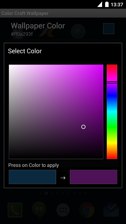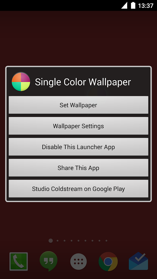 Pick and set any single color as background wallpaper. Simple, clean and no special permissions. Make sure to set it as a LIVE Wallpaper first.