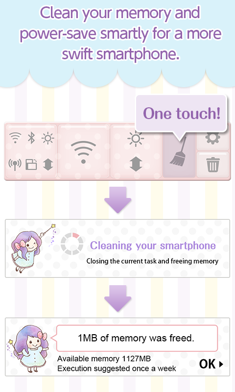 Also clean out your memory (unnecessary temporary data) with one touch