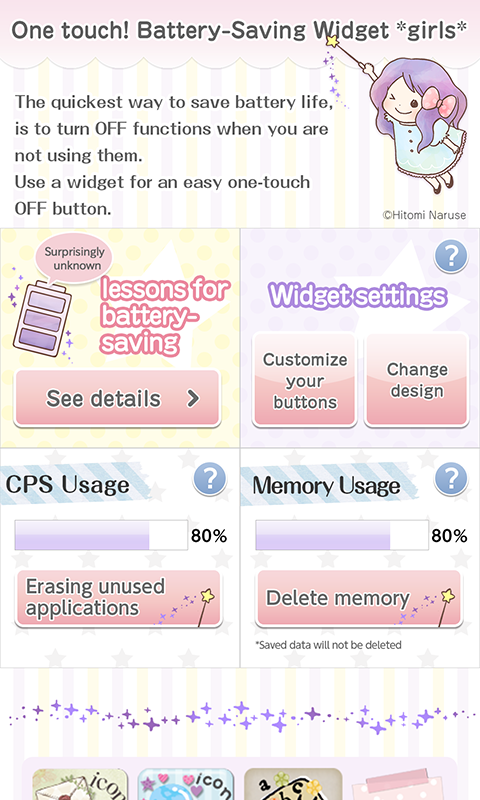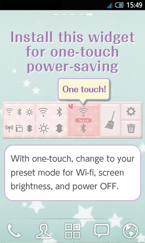 A cute widget to save power on your smartphone! You can switch to power-saving mode with one touch!