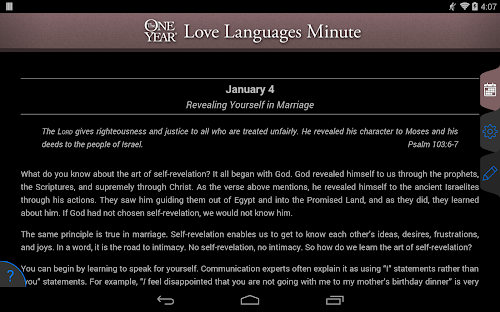 This version of One Year® Love Language Devo Android App comes with one universal variant which will work on all the Android devices.