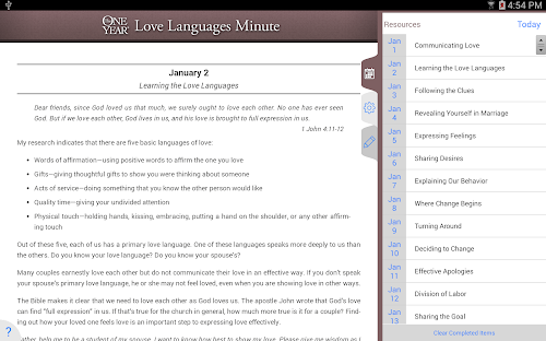This One Year Devo Reader app will help you connect with your loved ones with a daily devotional that includes: