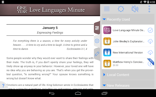 The One Year Devo Reader app gives you practical tools to help you connect with God daily. You will be able to: