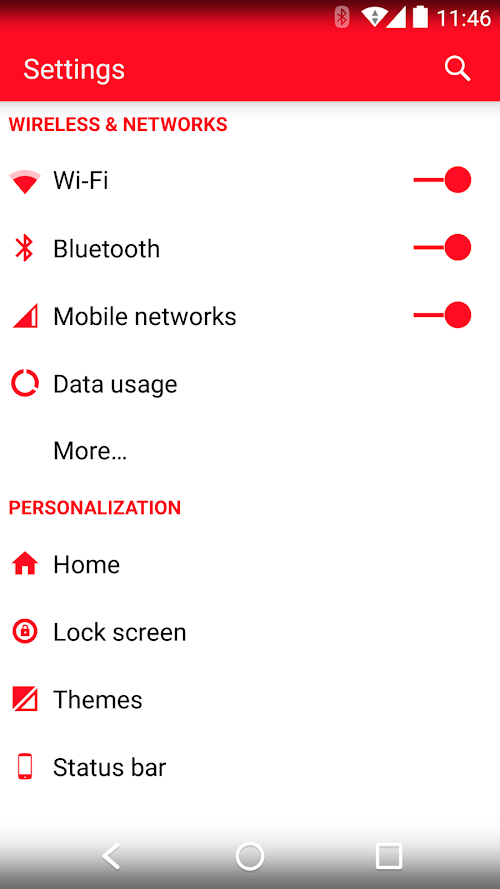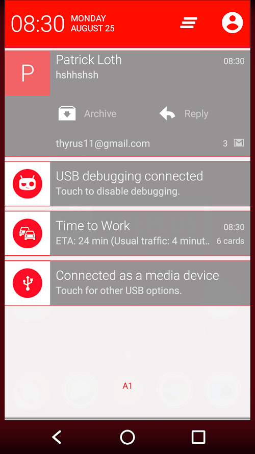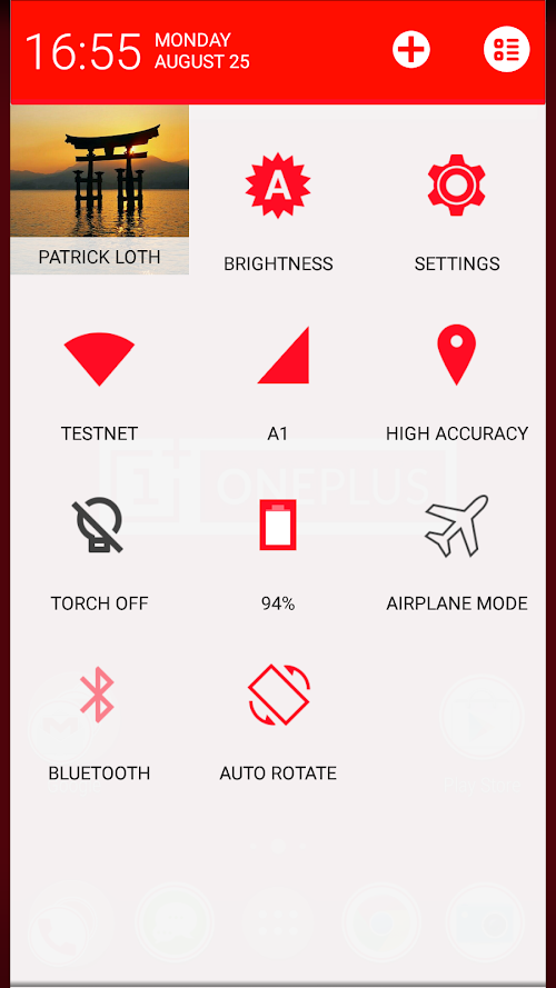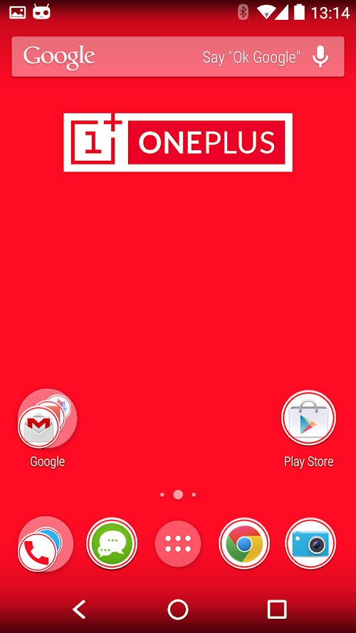 - Major apps themed with the red/white branding inspired by the OnePlus one