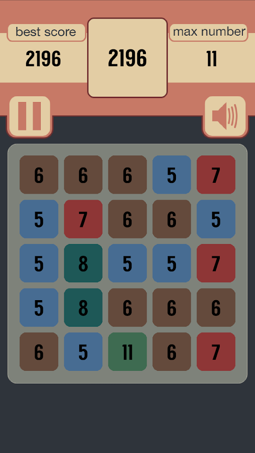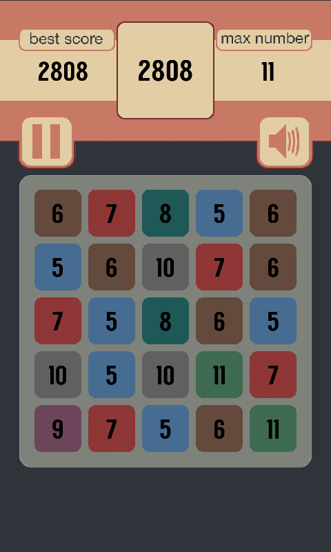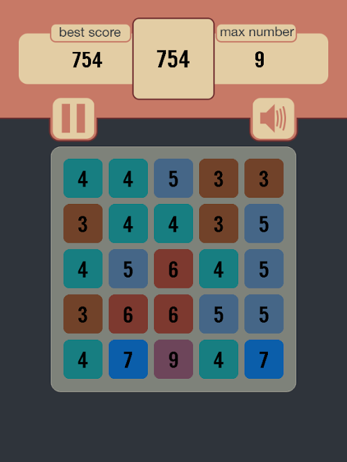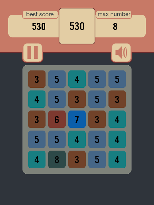 Combine equal numbers by 2,3,4,5 pieces at a time, to get the next number, which can also be combined with the same numbers. Train brain.