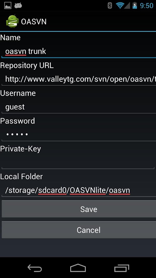 • Now allows you to save working copies and exports anywhere on the local file-system. (the predetermined /mnt/sdcard/OASVN has been removed)