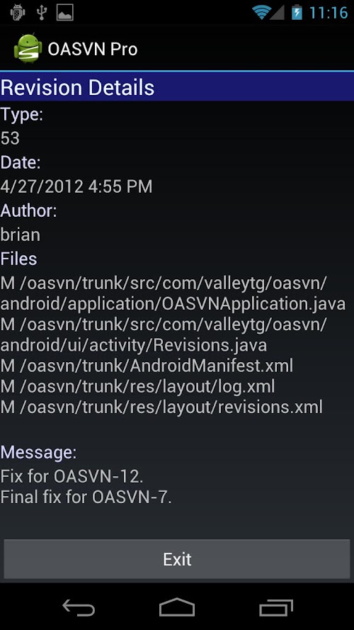 This is a completely free (and ad free) open source effort to bring the best svn client to the android platform! There are no limitations this free version, I just ask that you use the jira: https://openandroidsvn.atlassian.net/ to report any bugs or issues (also if you want to contribute to the project). The available Professional version receives bug fixes and general stability updates that the free version does not get and helps support development of OASVN. I will be adding additional nice features to the pro version only, but I want to keep the free version fully functional as an subversion client.
