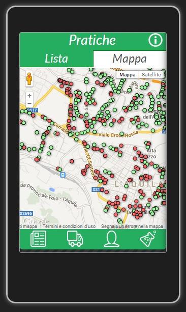 - Fornisce informazioni sulle pratiche presenti nelle vicinanze tramite servizio GPS (visualizzabile come lista oppure come mappa)