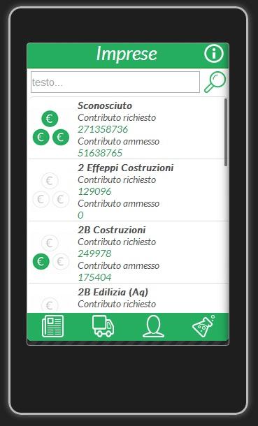 - Fornisce informazioni sulle ditte, il contributo totale richiesto e quello ammesso.OpendataAQ allows you to know and to follow the status of the practices inherent in the condition of the buildings and their contributions to the reconstruction of the city of L'Aquila.