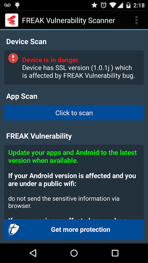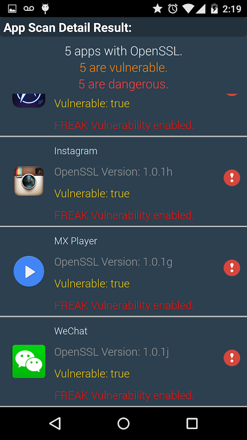 If you are looking to download other versions of OpenSSL FREAK Scanner Android App, We have 1 version in our database. Please select one of them below to download.