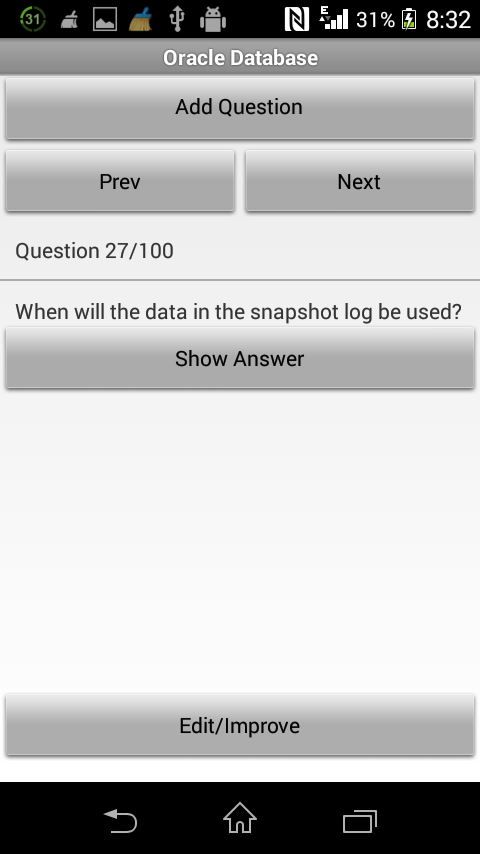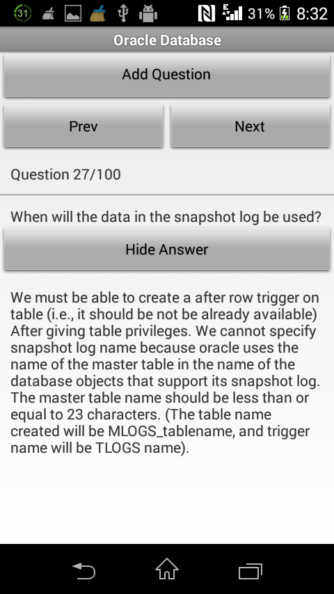 This version of Oracle Database Interview Q&A Android App comes with one universal variant which will work on all the Android devices.