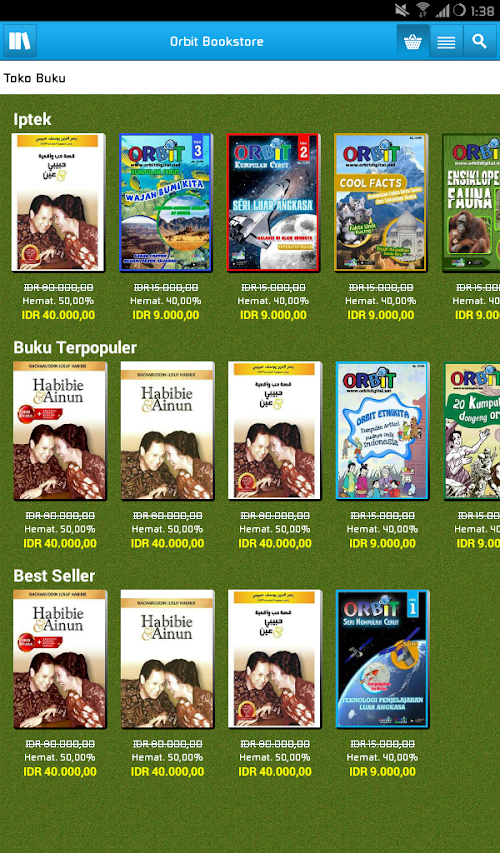ORBiT BOOKSTORE adalah toko buku yang menyediakan berbagai buku dan media pendidikan IPTEK untuk anak Indonesia generasi Digital. Orbit awalnya didirikan oleh Almarhumah Ibu Hasri Ainun Habibie, dan saat ini dikelola oleh PT Ilthabi Digital Edukasi.Orbit Bookstore is a bookstore that provides a wide range of books and media science and technology education for Indonesian children's digital generation. Orbit was originally founded by the deceased mother Hasri Ainun Habibie, and is currently managed by PT Ilthabi Digital Education.