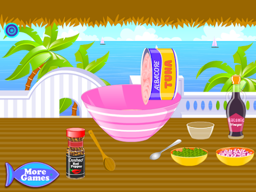 Hello, today is a great day and we want to eat something healthy and very good. To satisfy our appetite we thought at a recipe with tuna, we all know that tuna fish is very tasty and healthy and that is why our recipe is amazing. If you want to help us to prepare a very tasty dinner this cooking game will give you the opportunity to cook something very good. For the recipe to come out exactly as you have you will have to pay attention to all the instructions and you need to follow all the steps and use the exact ingredients of this recipe. Of course this kids game will help you to prove that you are a good cook and a good friend who can help us in critical times.