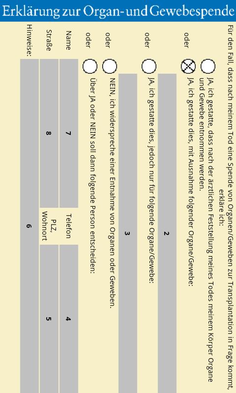 Es ist ebenso möglich, den Wunsch zur Spende aller oder einzelner Organe formlos auf einem Blatt Papier festzuhalten.