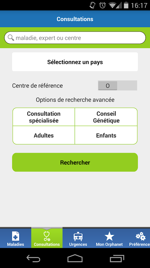Description Orphanet, an INSERM service, allows you to access a list of rare diseases, their description and associated resources.