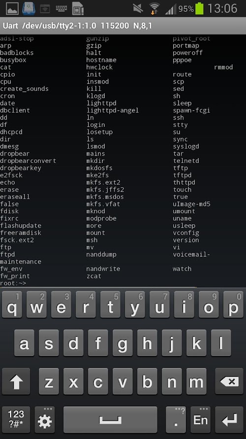 5. Anyway, you should see the UART adapter in your mobile device, and it may be in the "/dev/usb"