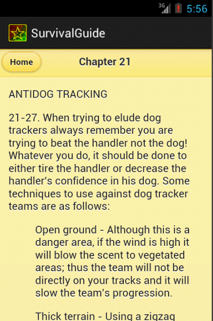 This complete set of all chapters and all extensive appendices from the FM 21-76 Survival Guide was initially released only to authorized U.S. government agencies but can now be legally accessed on your Android phone. It is a great companion for campers, hikers, and trekkers, featuring an abundance of useful and field-tested information for outdoor adventures.