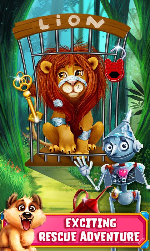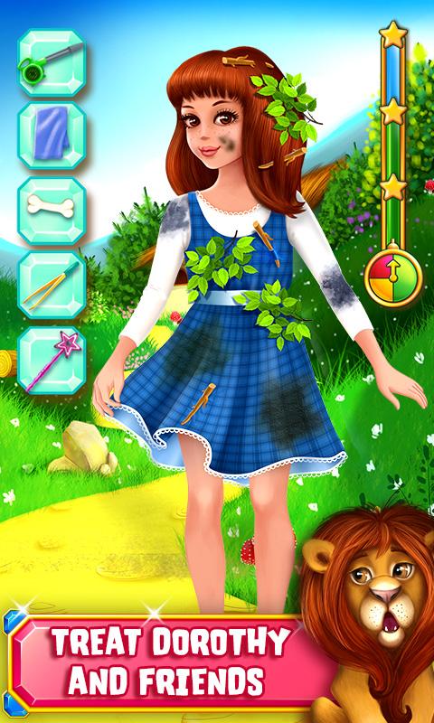 Dorothy and Toto meet friends on their adventure! Play hidden objects games to collect items for Tin Man, Lion, and Scarecrow! Use special tools like an oil can and sewing kit to help them prepare for their journey to Emerald City. Earn stars and advance to new levels as you successfully complete each treatment!