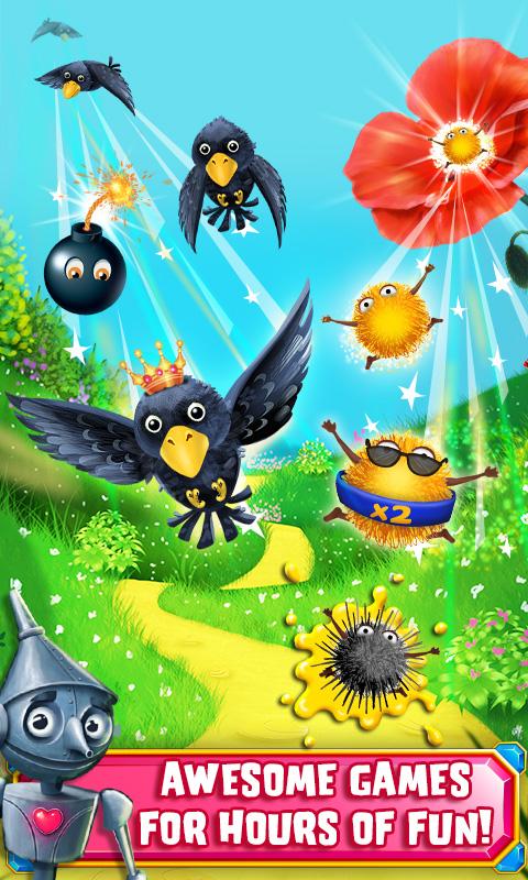 Play mini-games with Dorothy and friends! Enter a wood chopping contest with the munchkins and collect hay for Scarecrow as fast as you can! Tap birds to chase them away and avoid poppies that will make you fall asleep!