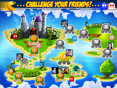 You can explore 95 levels in 6 worlds and unlock 8 uniquely powered friends. Hours of light-hearted, fun adventure lie ahead! Challenge your friends! Collect keys and fruit to unlock the next episode and explore the world of PAC-MAN Friends.