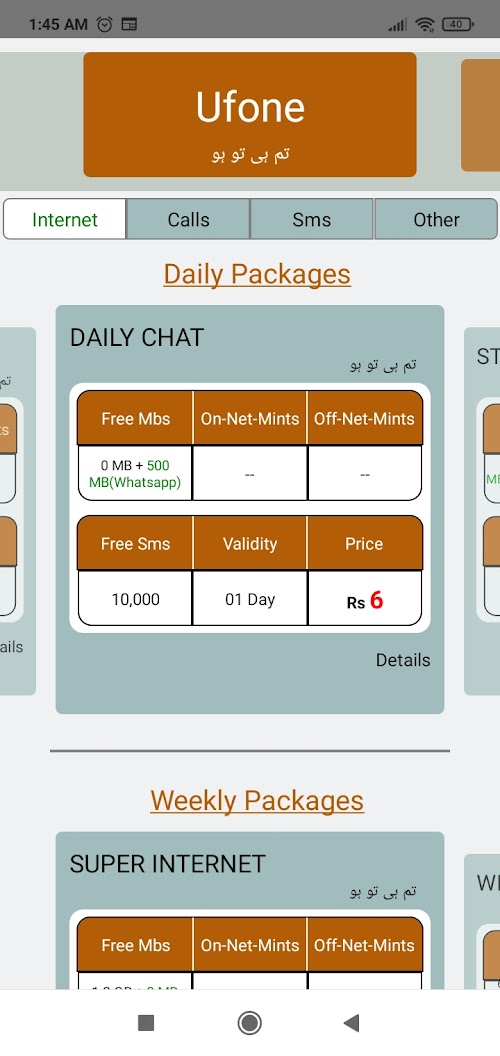 2): Provide information about different networks like Ufone, Telenor, Zong, Jazz and other.