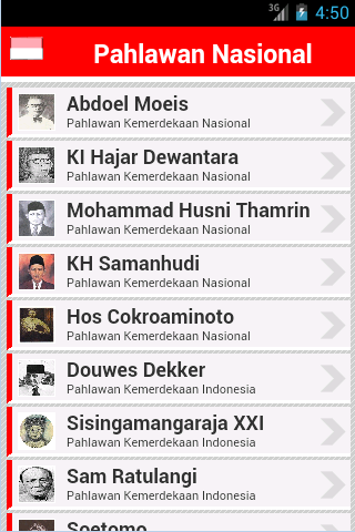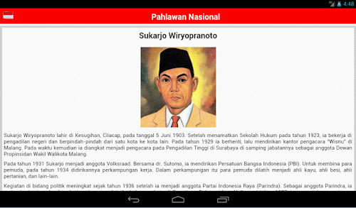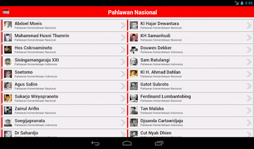 PAHLAWAN ITU BUKAN UNTUK DIKAGUMI, TAPI UNTUK DITELADANI !!This application is a biographical list of 156 figures that have been designated as a National Hero. The list is compiled based on the data on the website of Social Ministry by January 2010 is equipped with a National Hero set list afterwards.