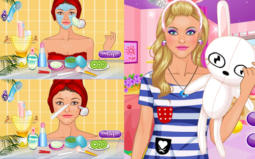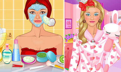 Pajama parties are just fabulous, right girls? You and your best friends having a blast painting your nails, creating chic hairstyles one for each other, fashion parades in your bedroom... But what do you say about applying some facials first, to prepare your skin for this unforgettable night? Play this fun facial makeover game and create a fabulous look for a fabulous pajama party! Have a blast playing because you are a true pajama princess now!