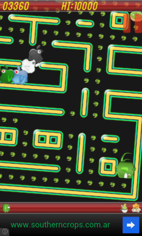 PAK MAN is inspired by the classic arcade game pac man but with an Android twist! You control a droid as it moves through a maze, eating dots for points. When all dots are eaten, droid wins and is taken to the next stage. Four evil apples roam the maze, trying to catch the droid. If the apples catch the droid, the droid is destroyed and loses a life point. When all lives have been lost, the game ends.