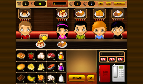 Serve the customers their desired pancake and flip, bake and toast them into different flavors, styles and decorations! Prepare and serve the orders quickly and accurately to reach your daily target sales. Check the recipe book if you're unsure on how to make a dish and keep track of your supplies!