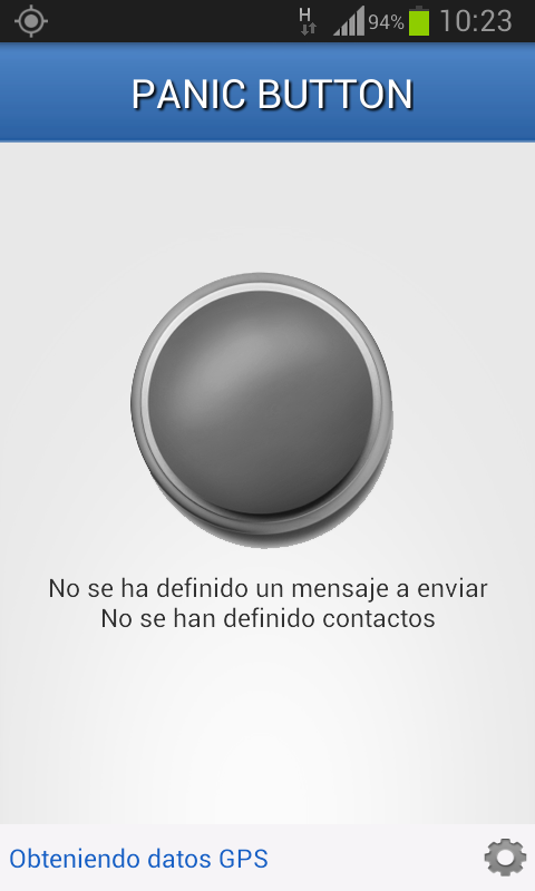 2) Desactivando la opción "GPS activo al inicio", el GPS iniciará el cálculo de posición al pulsar el botón con lo que el envío del mensaje de auxilio puede demorarse algunos segundos. Con esta opción la localización es más lenta pero el consumo de batería es menor.Panic Button is an application that allows you to send a distress message to your geographical position three predefined contacts.