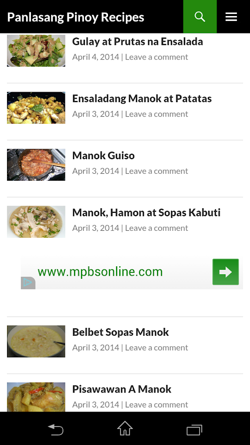 Panlasang Pinoy Recipes App is a recipe app that contains most of your favorite Filipino recipes. All the recipes are group by different categories, by that, the user can easily find the food recipes they love. Also, some of the recipes are written in Tagalog Language that's why it was easy to follow and understand.