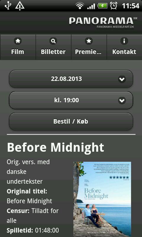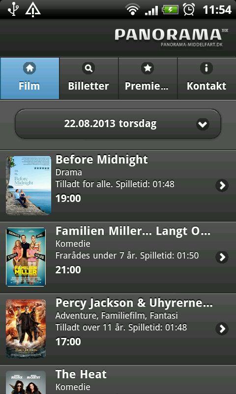 - Se trailere, synopsis m.v. på alle filmWith this app you have the opportunity to review the program for Panorama Middelfart, and see additional film information, trailers, censorship, participating actors, duration etc.