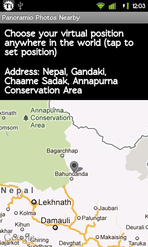 Displays Panoramio photos around your location. Optionally, you can select virtual location anywhere in the world. Program will remember the offset from your real location and display Panoramio photos from that virtual location mirroring your local movements.