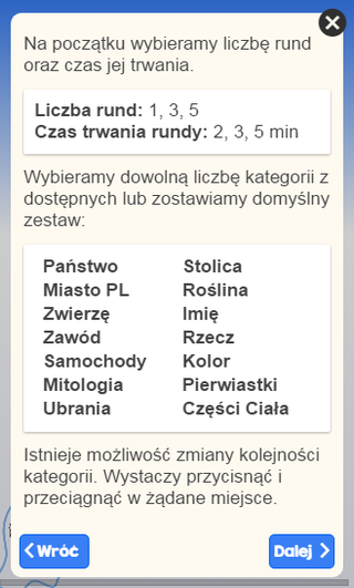 Od tego momentu gracze zaczynają wpisywać słowa zaczynające się na zadaną literę.