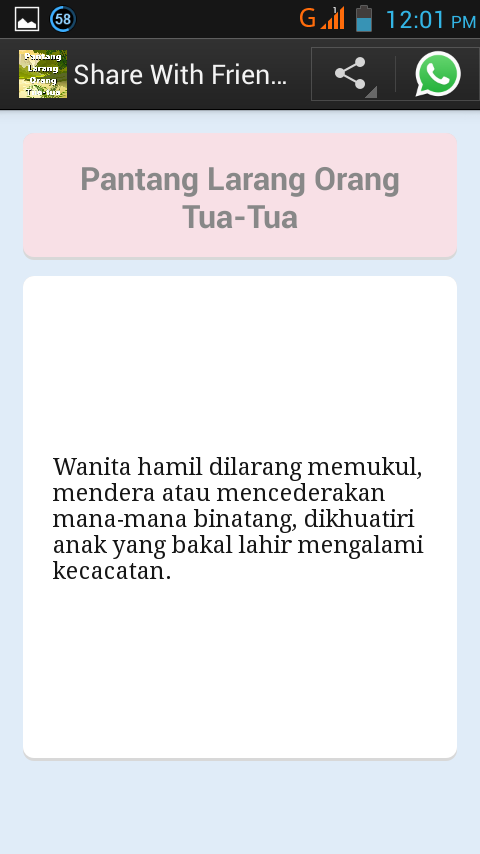 Applikasi ini memaparkan sebahagian daripada petua atau pantang larang yang digunakan oleh orang zaman dahulu. Sila baca dan fahamilah apa yang ingin mereka sampaikan. Selamat berhibur.Each accepted it is by the power of God. We as Muslims are obliged to believe in Qada 'and Qadar.