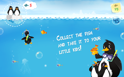 Papa Penguin is a simple and cute casual arcade game for children and their parents. Play as Papa Penguin who puts all his efforts in trying to get some fish for his two little children. And as all children, little penguins eat their fish very fast and demand for more.