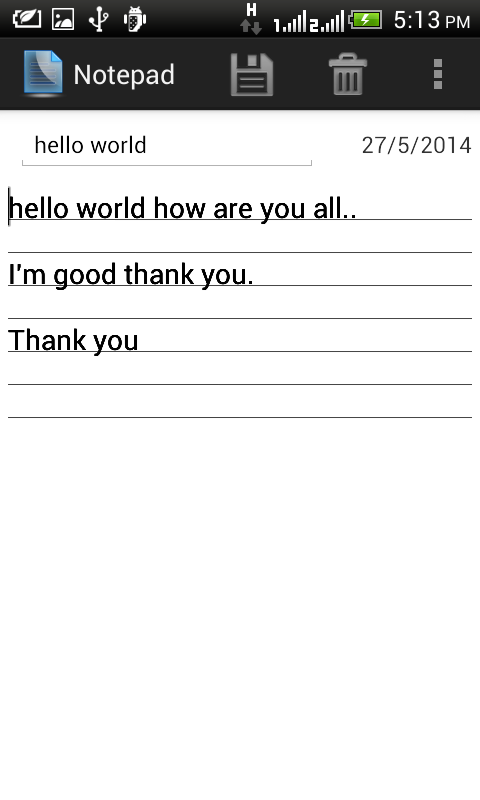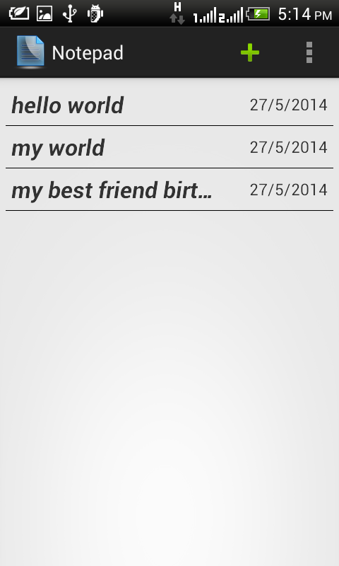 Notepad is designed to look like a paper notepad, and is just as simple to use. When you open Notepad, you’ll see a list of all notes you've created. To add a new note, tap on the “+” button at the top bar of the screen. The first line of text will automatically be used as the title or you can also provide the title.