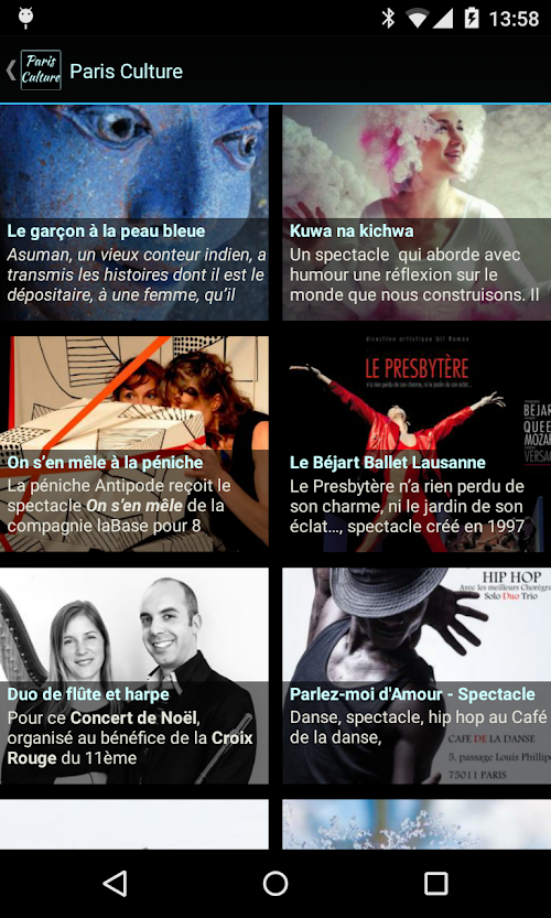 Les données proviennent des serveurs de la Mairie de Paris, et de son initiative d'ouverture des données.Wondering what to do in Paris? Our free application will show you the latest shows, exhibitions, events, cultural and sports activities in Paris. Find the Parisian evenings in the category Night.